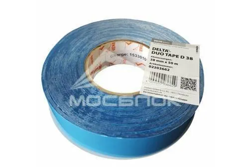 Delta Duo Tape 38 представляет собой двустороннюю клеящую ленту на основе из прочной армирующей сетки с клеящим слоем из полиакрилата. Защитная силиконизированная бумага не позволяет ленте слипаться в рулоне. Обладает высокой силой сцепления, гарантирует герметичное соединение пленки. Скотч наклеивается липкой стороной на одно из соединяемых полотен, полотна накладываются друг на друга и удаляется защитная пленка.