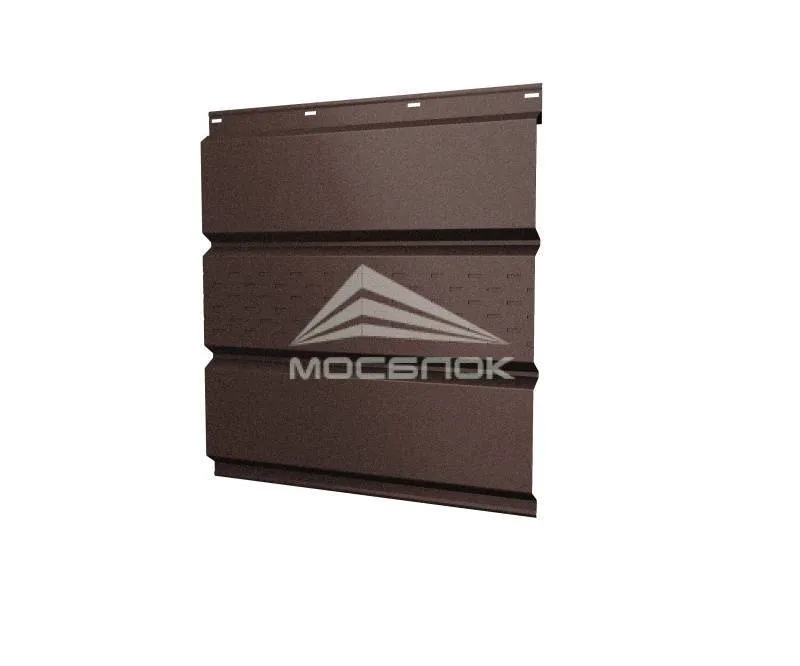 Софит Grand Line металлический центральная перфорация 0,45 Drap TwinColor с пленкой RAL 8017 шоколад — незаменимый элемент, сочетающий в себе функциональность и эстетику. Правильный выбор материала и профессиональный монтаж позволяют увеличить срок службы кровли, повысить энергоэффективность и создать привлекательный внешний вид здания. Компания "МОСБЛОК", предлагают широкий ассортимент качественных софитов, которые можно подобрать под любые требования и бюджет. Обратитесь к экспертам, чтобы ваш дом не только выглядел красиво, но и был защищен от негативных воздействий окружающей среды на долгие годы. Покупка софитов — это отличный способ придать вашему дому завершенный и современный вид, одновременно обеспечив надежную защиту кровли и улучшенную вентиляцию подкровельного пространства. Представьте себе уютный карниз, аккуратно облицованный перфорированными алюминиевыми панелями, которые не только гармонично вписываются в архитектурный стиль, но и служат надежной преградой для пыли, насекомых и влаги. Софит Grand Line металлический центральная перфорация 0,45 Drap TwinColor с пленкой RAL 8017 шоколад купить в городе Ставрополь