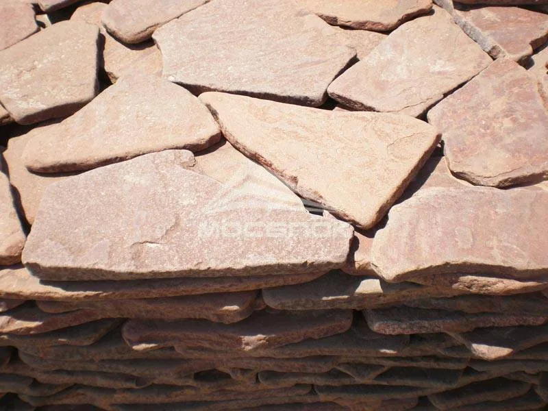 Песчаник галтованный терракотовый «Марс». Он имеет округлые края, с гладкой, придающей состаренный вид, поверхностью. Прежде всего имеющий кирпичную глубоко бордовую цветовую палитру. Применяется для отделки и облицовки цоколя, забора, фасада, а так же в ландшафтном дизайне. Помимо мощения дорожек этим песчаником выкладывают тропинки, отмостки, ступени, пороги. А так же создают неповторимые пруды и альпийские горки.
