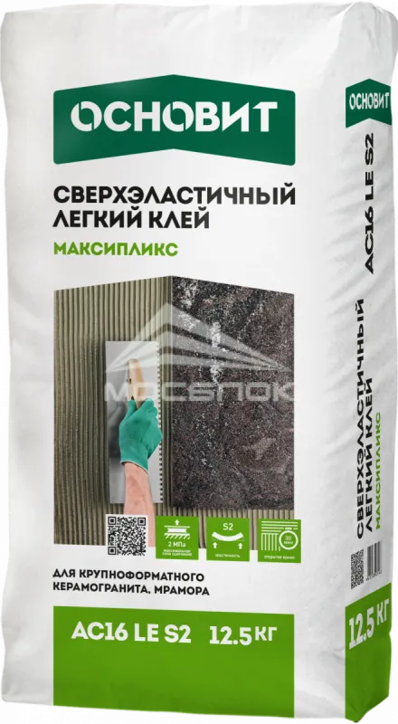 Клей легкий сверхэластичный МАКСИПЛИКС AC16 LE S2, 12,5 кг Основит. Технические характеристики и преимущества: